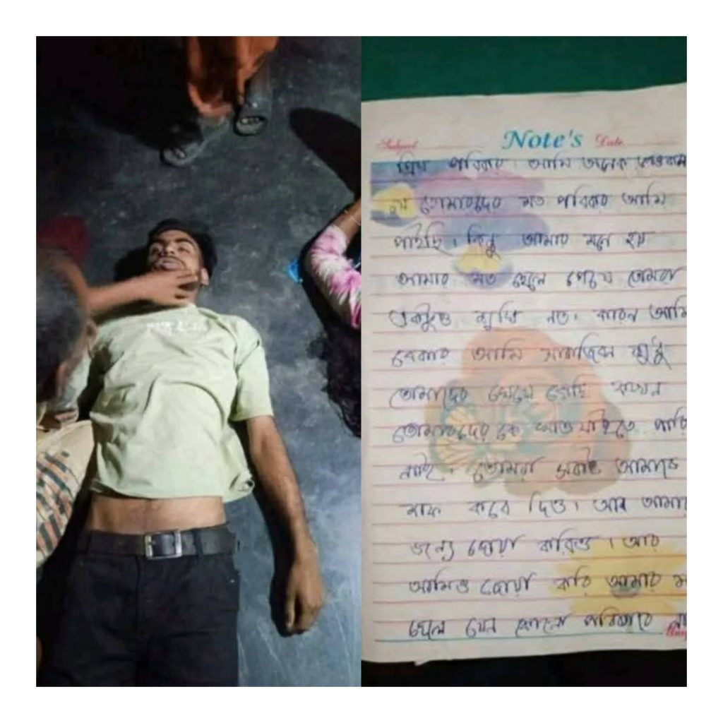 পরিবারের দাবি, ঘটনাস্থল থেকে একটি চিরকুট উদ্ধার করা হয়েছে। সেখানে বেকারত্ব ও ভবিষ্যৎ অনিশ্চয়তার হতাশার কথা উল্লেখ ছিল বলে জানা গেছে। তবে চিরকুটের বিষয়বস্তু সম্পর্কে পুলিশ আনুষ্ঠানিকভাবে কিছু জানায়নি।