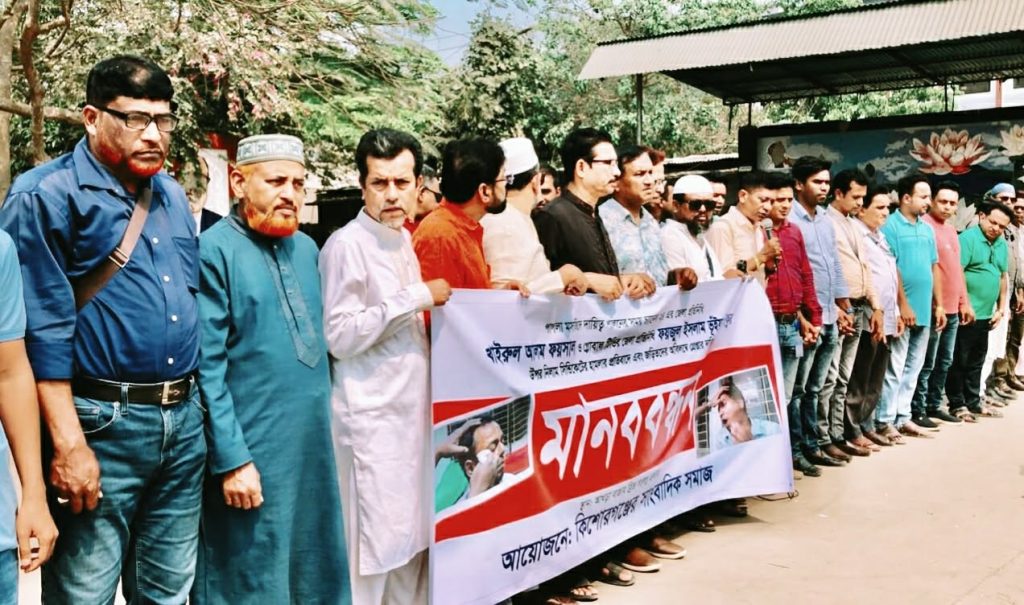 কিশোরগঞ্জে সাংবাদিকদের ওপর হামলার ঘটনায় মামলা ও বিচারের দাবিতে মানববন্ধন