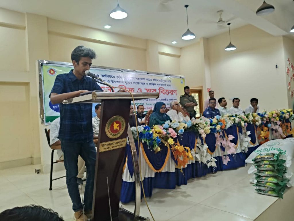 ” এসময় তিনি মাননীয় প্রধানমন্ত্রী তারেক রহমানের উদ্ধৃতি দিয়ে বলেন, “ভোটের কালি না শুকাতেই প্রধানমন্ত্রীর দেওয়া নির্বাচনী ওয়াদা বাস্তবায়নের কাজ শুরু হয়েছে, যার প্রমাণ আজকের এই কৃষি সহায়তা কার্যক্রম।” উপজেলা নির্বাহী কর্মকর্তা শাম্মী আক্তারের সভাপতিত্বে অনুষ্ঠানে স্বাগত বক্তব্য রাখেন উপজেলা কৃষি কর্মকর্তা শফিউল্লাহ সুলতান জনি।