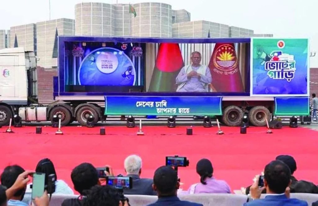 ভোটের প্রচারণা গাড়িতে জনমত বাক্সে উঠে আসছে মানুষের ভাবনা