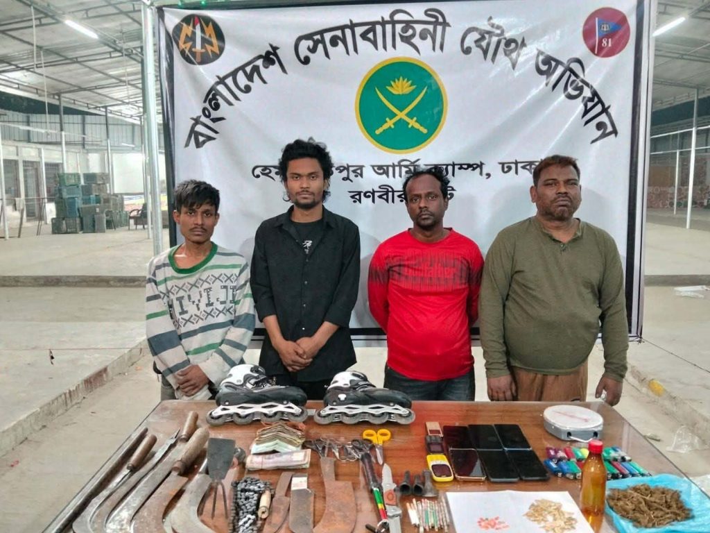 সাভারের গভীর রাতে সেনাবাহিনীর অভিযানে ছিনতাইকারী চক্রের ৪ সদস্য গ্রেপ্তার করে